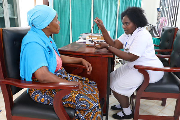 Nurse Sarah Simama attending a client who wants to choose a contraceptive method for family planning after a clinic session at Malamba Mawili health facility. Photo by Zacharia Mlacha.