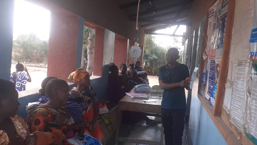 Community Health Workers talk to mothers at Msanga Dispensary.