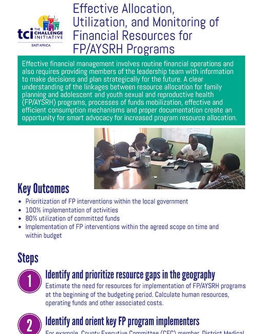 Effective Allocation, Utilization and Monitoring of Financial Resources for Family Planning Programs