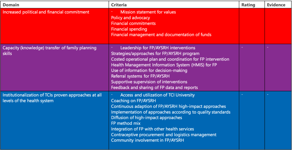 - To support identification of gaps or areas that require strengthening in implementation of FP/AYSRH interventions