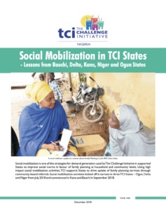 Social mobilization is one of the strategies for demand generation used by TCI in supported States to improve social norms in favor of family planning at household and community levels. Using high impact social mobilization activities, TCI supports States to drive uptake of family planning services through community-based referrals. Social mobilization activities engage young men and women age 18 to 35 years as potential family planning clients, and who also mobilize other potential clients to use family planning services.