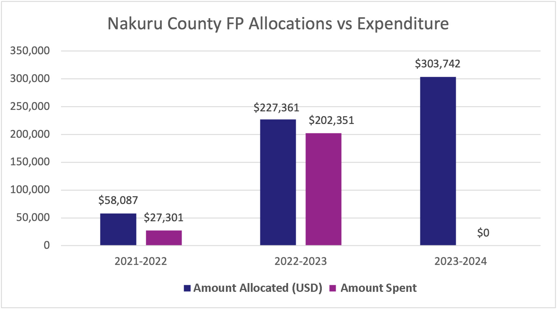 Through TCI’s multi-level SMART advocacy efforts with key decision-makers, the county has realized over 200% increase in resource allocation for implementation of FP/AYSRH HIIs from FY 2021/2022 to 2023/2024 within their annual budget. (note that expenditures for 2023 have not yet been calculated)