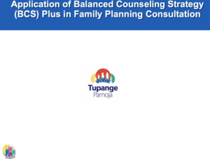 This training presentation teaches participants about Balanced Counseling Strategy (BCS) Plus, a client-friendly approach that uses job aids to facilitate family planning consultations.