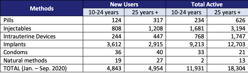 En conséquence, les données partagées par le district sanitaire de Ziguinchor après le début de la mise en œuvre des interventions éprouvées et de l'encadrement technique de TCImontrent comment l'utilisation des services de contraception a continué à s'améliorer au fil du temps. Le tableau 1 présente l'utilisation des services de contraception par groupes d'âge.
