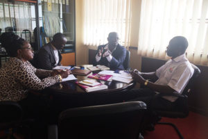 Allan Katamba (second from right) meets with Kampala City health officials about the Challenge Initiative.