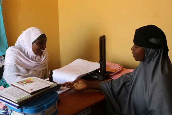Sekina Ahmed Abubakar providing care to a client in the renovated Isa Yuguda PHC. Photo credit: Martins Enemali