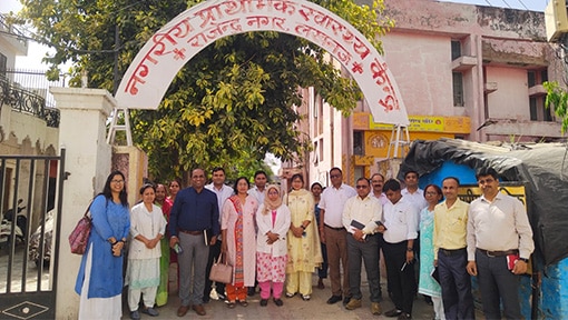 Study tour participants from Jharkhand visit the Lucknow Urban Family Welfare Center to gain insights from facility staff.