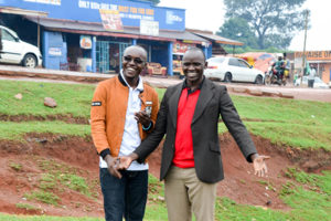 Isaiah Chebrot, MD, (right) with TCI’s country lead in Uganda, Allan Katamba.