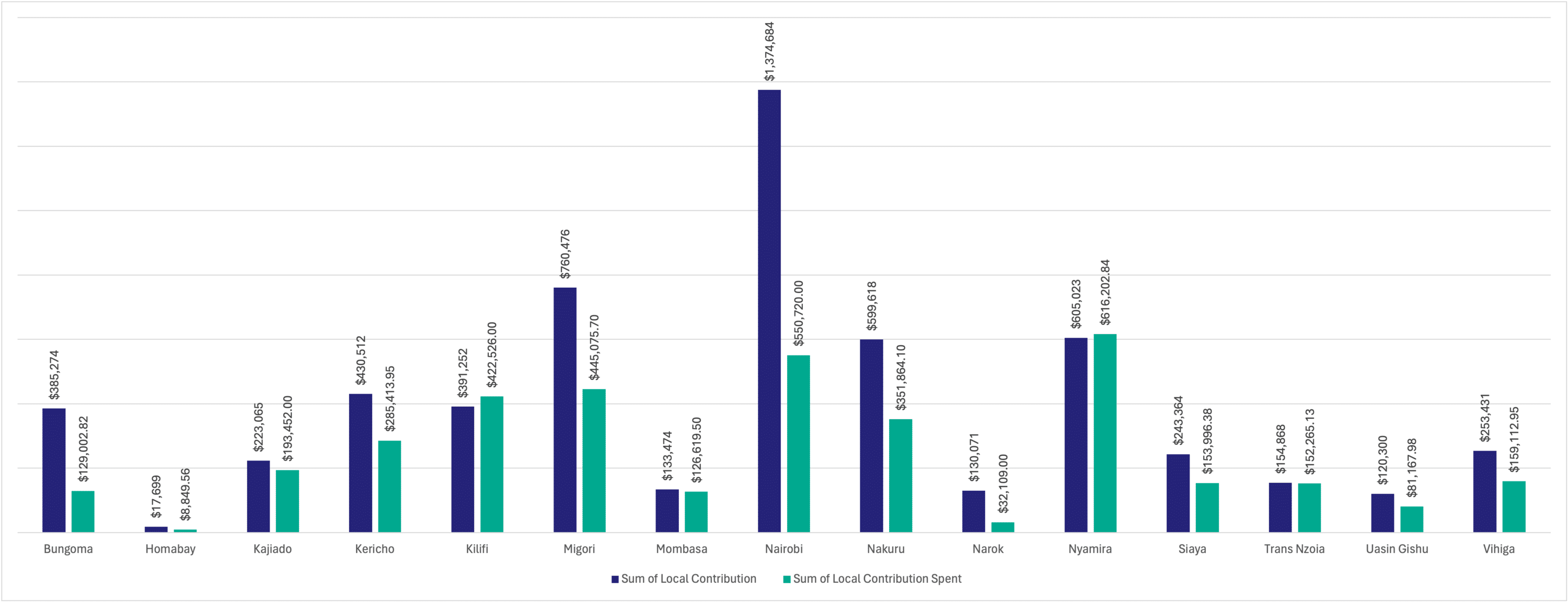 Since TCI first engaged Kenya counties in 2017, local governments have committed a total of $5.82 million and spent $3.71 million.