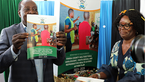 His excellency Wilber Otichello, governor of Vihiga County, at the launch of a multisectoral action plan for adolescents and youth.