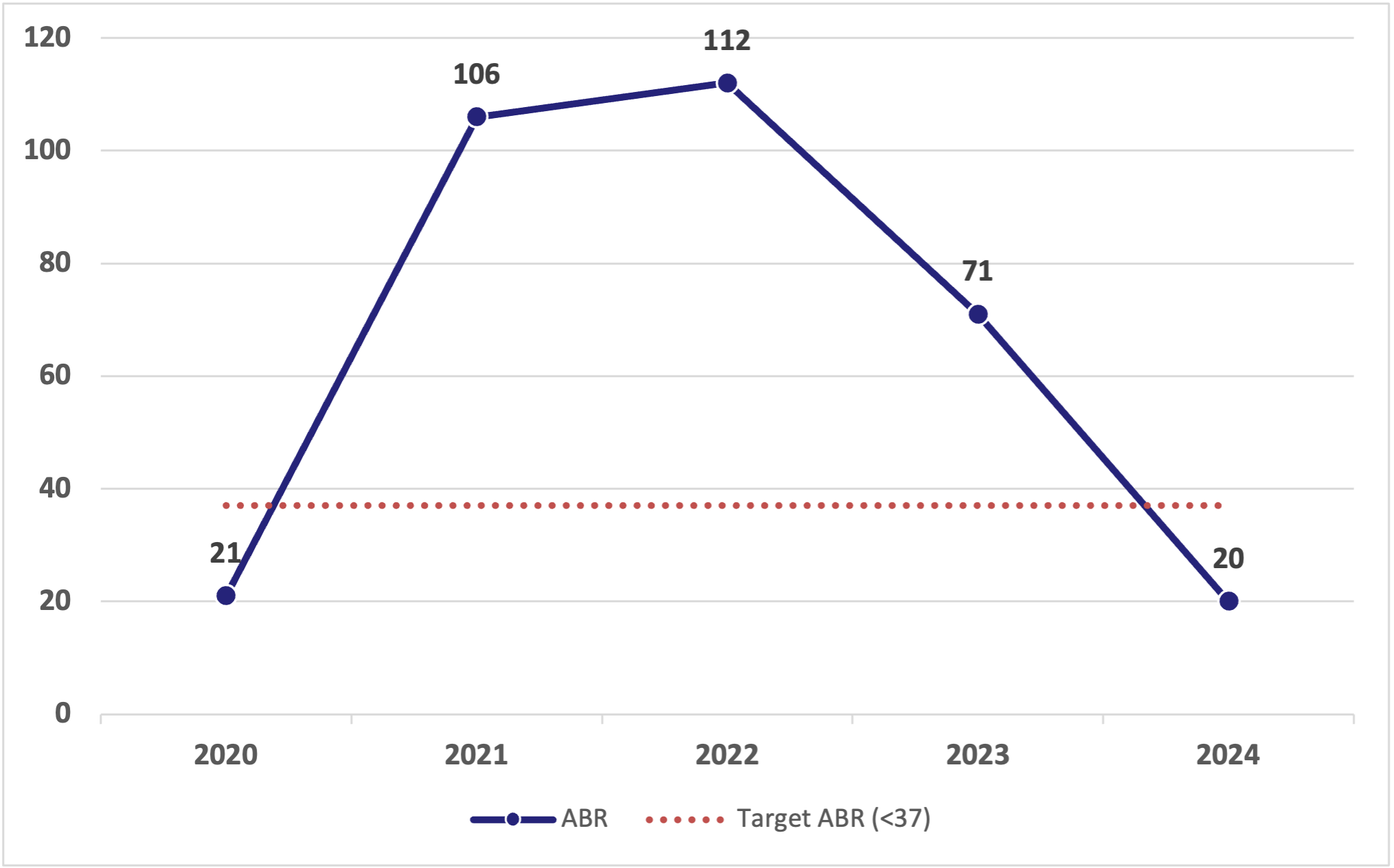 By 2023, Naga’s ABR dropped to 71, and in 2024, it declined further to 20, surpassing the national target of 37.
