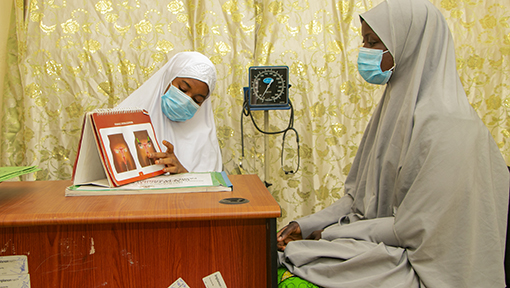 Health worker in Bauchi State reviews family planning methods with potential client.