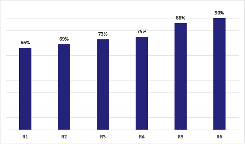 As a result, the overall score for family planning improved in the last round of the RAISE assessment by 25% (90% in round 6 compared with 66% in round 1) which meant Aligarh was progressing towards maturity and self-reliance. Similarly, the scores of all four domains improved, with Domains 3 and 4 improving in round five and six. Aligarh graduated from TCI’s direct support in March 2022.