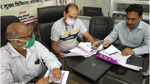 Supreme Kumar Sagar (center) completing the RAISE tool along with the Urban and FP Nodal Officer and Urban Health Coordinator in Aligarh.