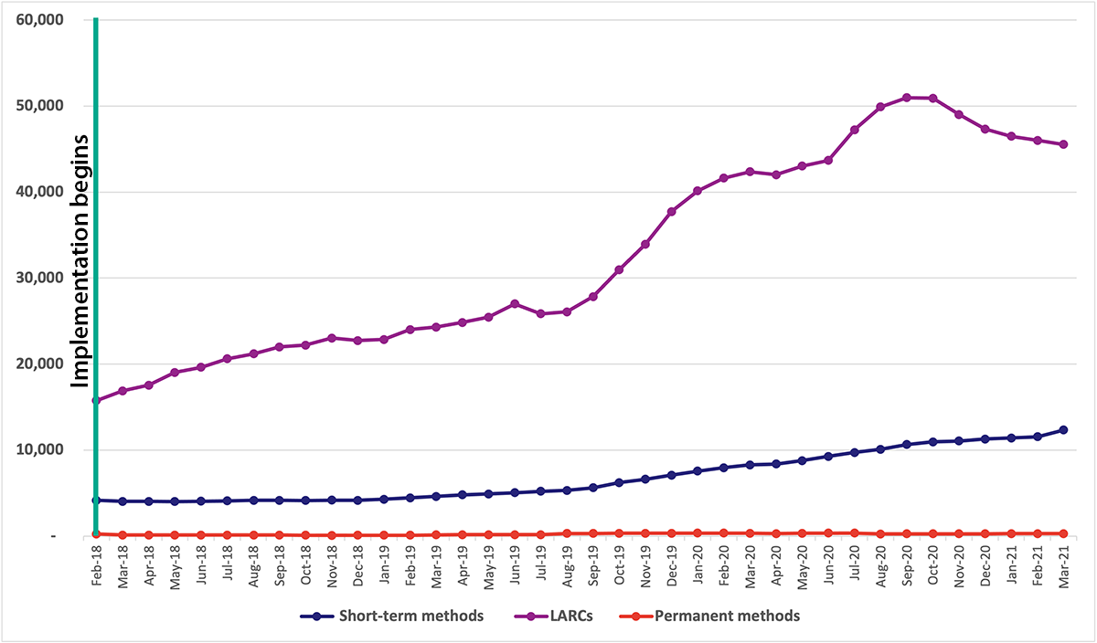In Tanzania, those learnings included adoption of the family planning interventions within municipal workplans. According to Ms. Panga, advocacy efforts with city leadership have led to increased allocation towards family planning programs with notable increases in client uptake of various services offered within their facilities, including a 269% increase in family planning client volume since TCI began implementation in February 2018 to March 2021, when Ubungo graduated. This translated to 42,400 additional users.