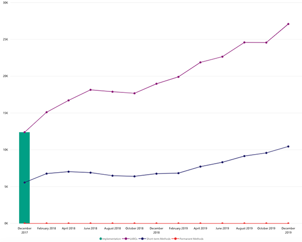 Niger state has seen a 130% increase in LARC users and a 117% increase overall in annual client volume in its nine TCI-supported LGAs. (Source: HMIS)