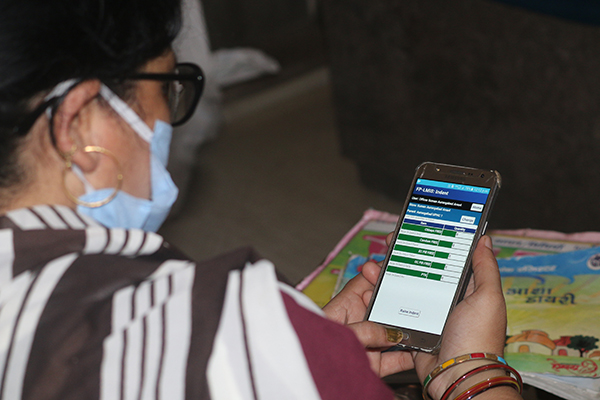 An ASHA using the FPLMIS mobile application.