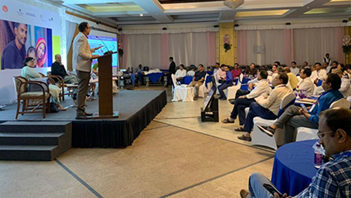 TCI’s program director Hitesh Sahni (standing at podium) addresses stakeholders at the state-level consultation meeting in Bihar.