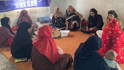 Farzana Baloch, affectionately known as “Farzana Baji,” educates women on healthcare options in Manghopir.