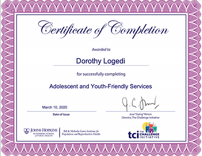 Logedi has earned 54 certificates so far by successfully completing assessments related to the high-impact approaches in TCI-U. According to Dorothy, coaching in conjunction with TCI-U needs to intensify to ensure access and utilization of it by more providers so they have the necessary knowledge and skills to offer quality contraceptive services.
