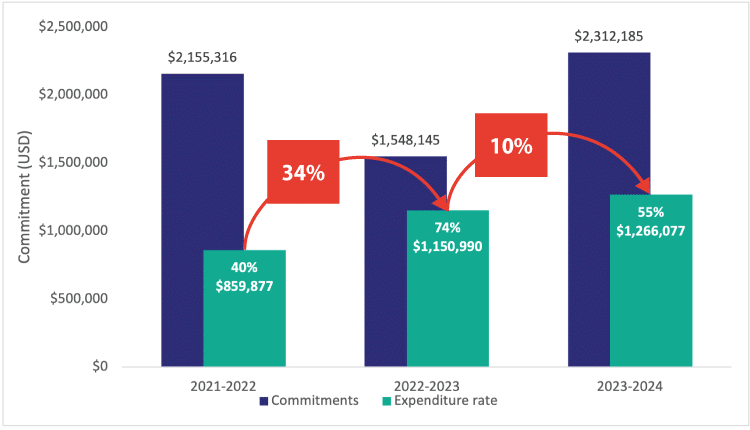 Local government financial commitment vs. expenditure – 2021 to 2024.