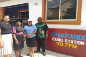 The TCI Technical Support Lead in Anambra State, Onyedikachi Ewe (DG TSL), Mrs Uju Anambra States Health Educator, Mrs. Ngozi, member of Interfaith Forum and staff of Kpakpando FM and Mr. Charles of Kpakpando FM.