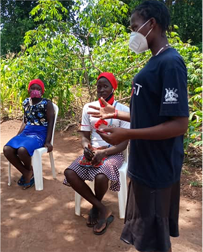 Doreen engaging with her peers during a health day at Nambale Health Center.