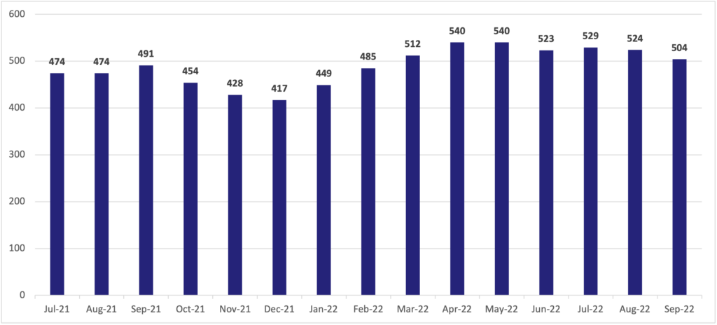 Client volume increase of 6% at Koudougou Urban Health Center (Jul. 2021 – Sept. 2022).