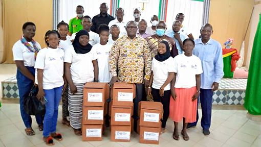 JLT champions present suggestion boxes to Koudougou’s mayor.